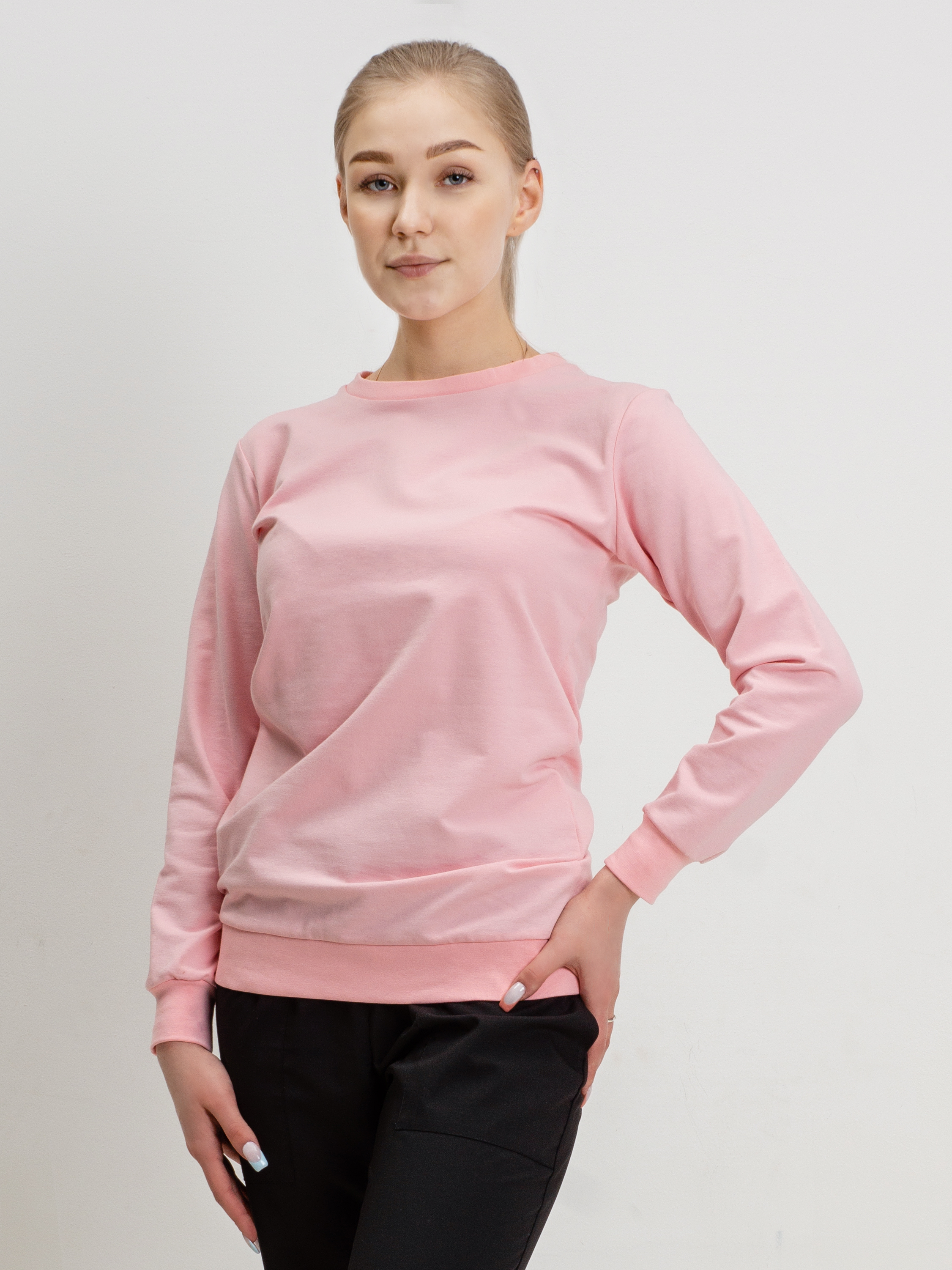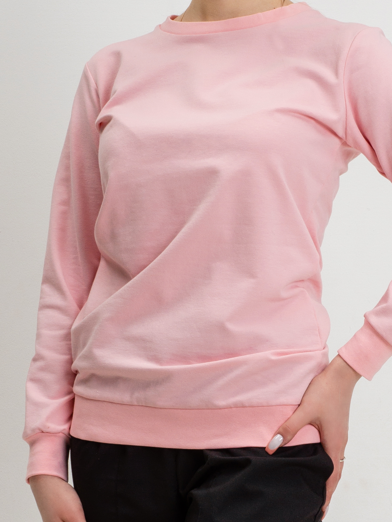 Толстовка из трикотажного футера 2х нитка. На рукавах и по низу трикотажные манжеты.